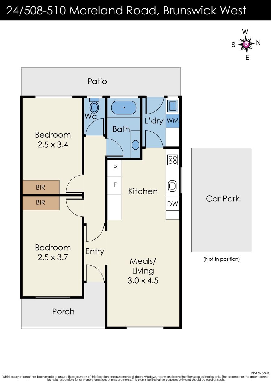 A homely floorplan with hallway leading to open plan kitchen/living with wonderful bench space, dishwasher, split system. 2 oversized bedrooms with mirrored BIRs. Floor to ceiling tiled bathroom with bath, sep WC, sep laundry. Impressive courtyard ready for some garden beds and a BBQ. Open car space on title.